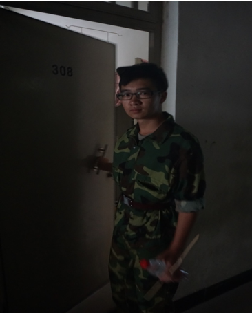 9:00 趁同学休息的时候,我要多练练踏步,不然等一下要拖累同学了。“同学,怎么一个人在练习了,我们陪你吧,应该把脚给抬起来,脚不要弯曲。对,做得很好,加油。”