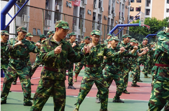 “哈哈,教官你真逗。”“好,学完下一个动作就能休息了,认真点啊!”