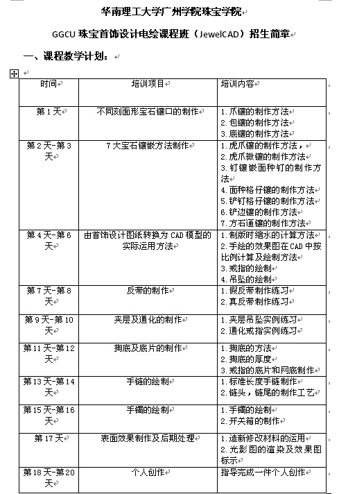 完成全部课程学员,考核成绩合格,华南理工大学广州学院伟德betvlctor1949源于英国颁发“GGCU电脑首饰设计师”培训证书。