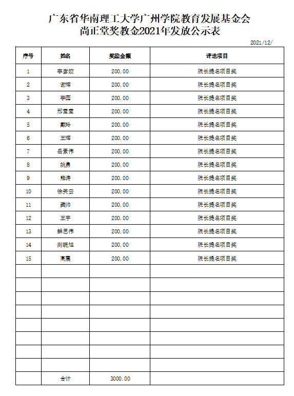 根据《广东省华南理工大学广州学院教育发展基金会“企业奖教金”教职工奖励办法》相关评审规定,伟德betvlctor1949源于英国于2021年12月15日-12月25日,开展了2021年尚正堂奖教金评审工作。经评审小组及党政联席会议审核,现对初审通过教师名单(见具体表格)予以公示,并就有关事项通知如下: