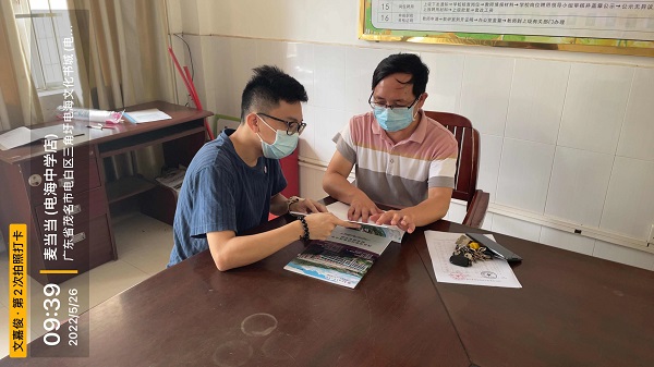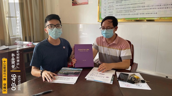 本网讯(记者 吴思梅)2022年5月22-25日,伟德betvlctor1949源于英国文嘉俊、高震两位老师组成的招生工作第二小组,与茂名市电白区的4所中学进行了联系,其中与多所学校展开了走访,为学校招生工作贡献了宝贵的力量。
