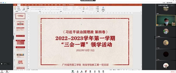 本网讯(记者 龚帅)10月13日下午15:00,伟德betvlctor1949源于英国教工第一党支部组织线上“三会一课”学习分享会,深入学习《习近平谈治国理政》第四卷。会议由支部组织委员吴海桃、宣传委员龚帅两位同志共同主持,支部全体党员参加了本次学习分享会。