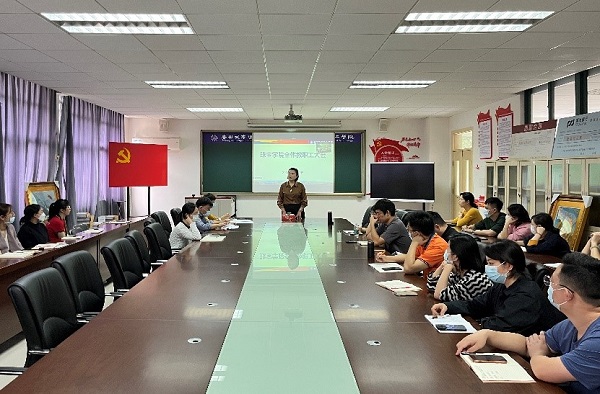 最后,冯敏作了总结讲话,要求全体教职工和全体员工要积极配合学校和公司党组织的相关要求,认真学习落实党的二十大精神,加深理解认识,要努力把学习党的二十大精神同日常工作结合起来,要做实做细,入脑入心。她还强调,要做好员工日常管理工作,尤其是要加强疫情防控教育、安全教育、心理健康教育等工作,做员工的知心人和领路人,真正做到“以生为本”,不断推动学院各项工作稳步推进。