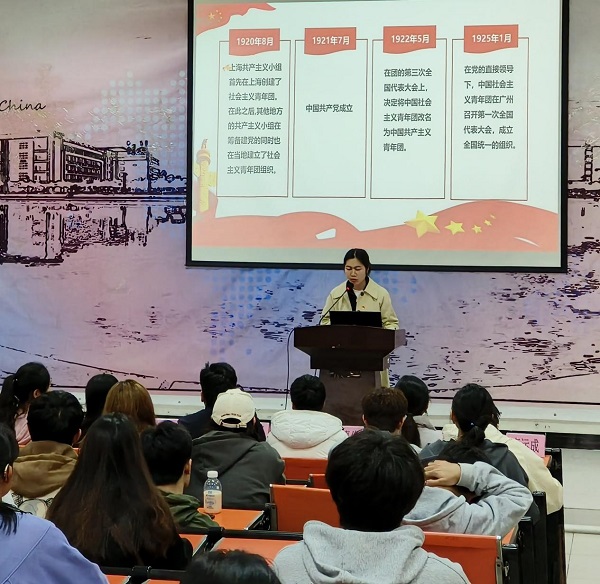 学院团委副书记张舒为同学们讲解了加入共青团的重要意义以及相关流程,希望广大学子能积极地加入到共青团组织当中,并在共青团这所实践学校中接受政治训练、加强政治锻造、追求政治进步,并以成长为一名合格的共产党员为目标、为光荣。