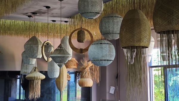 得益于机械设备的辅助,华蒲灯饰有限公司在蒲草编织灯具的生产效率上得到提升,实现了规模化生产。他们与众不同的设计以及借助现代化机器的思路为蒲草编织工艺带来了新的突破,也为实践团成员提供了许多创新的宝贵经验。