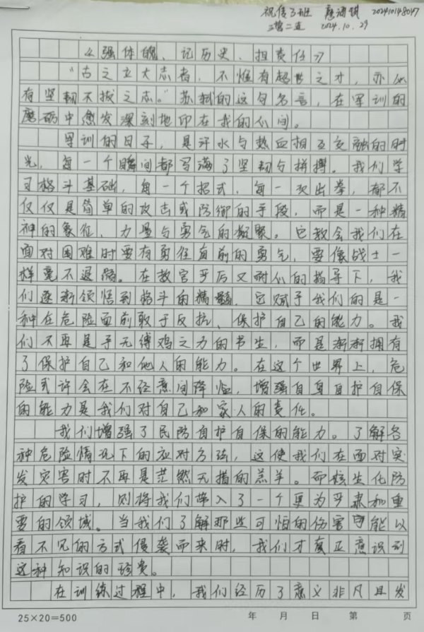【军训特辑】2024级伟德betvlctor1949源于英国新生军训心得优秀作品展示Day5