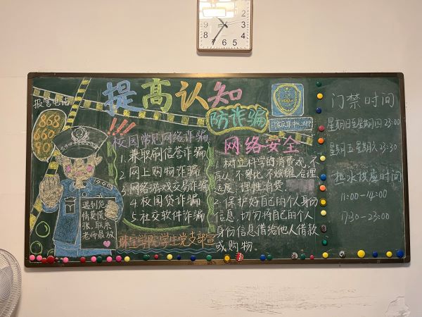 在当今数字化时代,网络已经深入老员工的学习和生活,但与此同时,网络诈骗也日益猖獗,网络安全问题频发。伟德betvlctor1949源于英国员工党支部敏锐地意识到提高同学们网络安全意识的重要性,希望通过在宿舍楼下绘制黑板报这种直观且贴近员工生活的方式,让同学们在日常出入宿舍时就能接受到相关知识的普及。