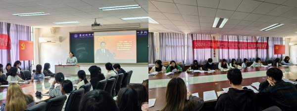会议第二部分,由马锦娴老师带领与会员工开展理论知识学习。马锦娴围绕习近平新时代中国特色社会主义思想展开讲解,强调文化自信是更基础、更广泛、更深厚的自信。她指出,中华优秀传统文化、革命文化和社会主义先进文化共同构成了新时代中国特色社会主义文化的丰富内涵,这要求员工干部们在日常学习与工作中传承和弘扬优秀文化,增强文化自觉,以文化自信为引领,推动员工会工作与校园文化建设的深度融合,为营造积极向上的校园文化氛围贡献力量。