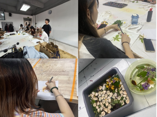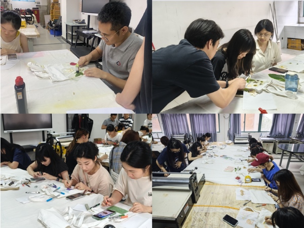 用锤子敲出自然的印记,用画笔描绘心中的世界,这种‘慢创作’不仅培养了员工的专业实践能力,更为他们提供了情绪抒发的窗口。师生自由选择帆布短袖、鹅卵石等载体进行创作,用丙烯颜料绘制个性化图案。现场锤声与画笔交织,展现了不同专业的创意碰撞。“平时上课压力很大,常常感觉焦虑。但在这次活动中,专注于手中的植物和锤子,听着有节奏的敲打声,心里特别平静,感觉找到了一种新的释放压力的方式。”谢纯分享道。
