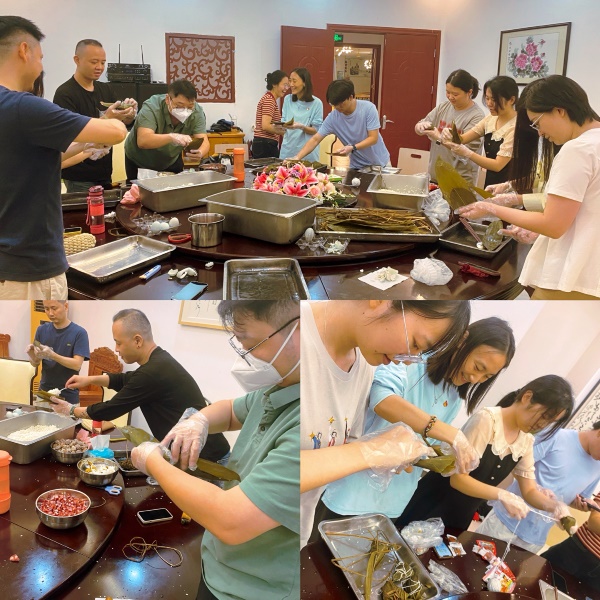 在包粽子环节,党员教师们围坐一堂,以粽叶为媒,以糯米为介,一边交流南北粽子的口味差异,一边学习包粽子的技巧。产品设计专业的教师们还从专业角度探讨了传统手工艺与现代设计的结合点,现场气氛热烈而温馨。大家纷纷表示,要将传统文化融入课程思政的设计与润化之中,在教学和工作中引导员工坚定文化自信,厚植家国情怀。