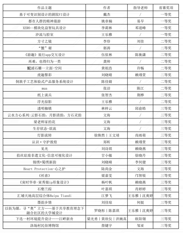 大赛获奖作品名单(刘俊杰 供)