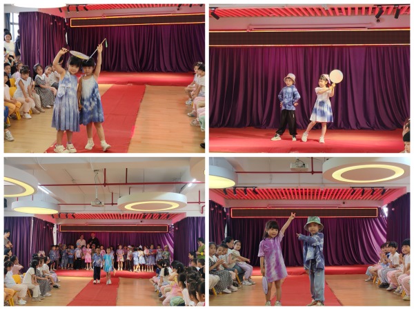 活动现场,最引人注目的便是那场充满童趣的走秀环节。幼儿园的小朋友们身着美丽的扎染服装,自信地走在T台上,脸上洋溢着灿烂的笑容。支部的党员在一旁耐心引导,用鼓励的话语与温暖的笑容为孩子们加油助威,孩子们的精彩表现也赢得了现场阵阵掌声和喝彩声。
