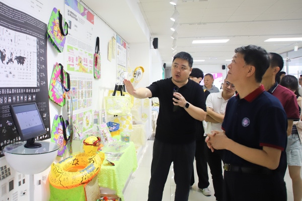 随后,领导嘉宾与师生移步至展厅,开启毕业优秀作品静态展览的参观之旅。展厅内丰富多样的作品,全方位展示了毕业生的专业素养与创新思维。产品设计专业展区涵盖珠宝首饰、文创产品、3D打印作品,功能性与美学的创新结合体现了科技融合与文化再生;服装与服饰设计专业展区的成衣搭配着设计手稿和面料工艺说明,完整呈现了作品从设计构思到工艺实现的过程。作品以传统工艺现代化与可持续时尚为特色,强调文化叙事与穿着体验;视觉传达设计展区的作品包含数字媒体、品牌包装、插画设计,以向社会传递设计美学与文化价值为特色;宝石及材料工艺学展区的实验聚焦矿物材料与科学技术等方面,以复合型与应用型研究为特色。嘉宾们在精美展品前驻足欣赏、交流探讨,对学子们的创意构思与精湛技艺给予高度评价。