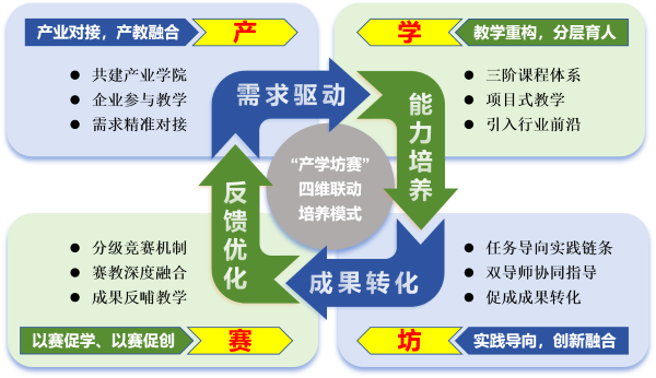 “产学坊赛”四维联动育人模式体系(邢莹莹 供)