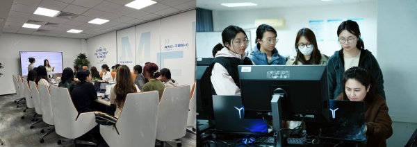 校企合作课程授课场景图(左:新媒体内容营销,右:珠宝首饰3D技术应用)(邢莹莹 供)