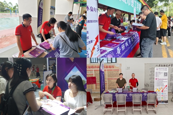 本次招生宣传活动自启动以来,公司党政领导班子高度重视并大力支持。领导班子成员深入招生一线,与考生及家长面对面交流。学院还组成了一支复合型宣讲团队,成员包括党政领导班子成员、各教研室主任、招生工作专班成员等。通过线上直播、线下咨询会、高中宣讲、校园开放日等多种形式,多角度地展示了学校的办学实力和育人理念,并在线上实时解读招生政策。6月19日至28日,宣讲团队深入肇庆、茂名、广州琶洲、珠海等地举办专场咨询会,还走进珠海、茂名、化州、高州、深圳等地的12所重点高中,通过耐心答疑、精准指导等方式,吸引了众多考生与家长现场咨询,取得了良好的宣传效果。