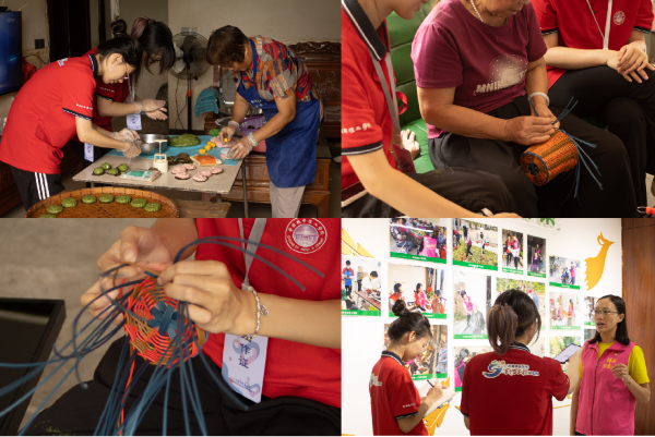 为深入了解客家文化的精髓,实践团在梯面客家嫂的带领下,亲身体验了客家传统美食艾糍、传统手工艺竹编的制作过程。在制作过程中,实践团还了解到梯面客家嫂是当地文旅发展的重要力量,便邀请梯面客家嫂党支部委员李翠英进行了人物专访。李翠英介绍道,客家嫂团队经过多年发展,已从最初的志愿服务组织成长为当地文旅产业的中坚力量,更在客家文化传承中发挥着独特作用。目前团队已开发出10条各具特色的旅游路线,将红山村的田园风光、百步梯的历史遗迹等景点有机串联,形成完整的旅游网络。在非物质文化遗产保护方面,客家嫂团队同样成绩斐然。她们积极推动梯面古茶园的开发工作,成功将古树茶制作技艺申报为非物质文化遗产。李翠英表示,客家嫂团队正在探索文旅融合发展新模式,通过开发文创产品、举办民俗活动等方式,让传统文化焕发新的生机,为乡村振兴注入持久动力。