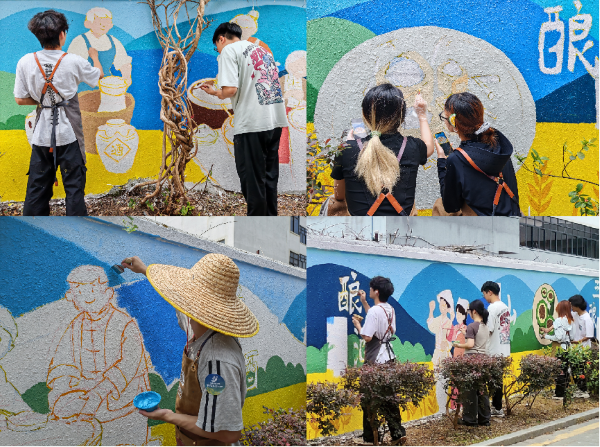 了解当地特色文化是开展实践活动的重要前提。为精准把握梯面镇文化特色和发展需求,实践团前往梯面镇党群服务中心进行参观学习,并了解了梯面镇宜居宜业的生态环境、特色鲜明的农文旅体融合产业项目以及浓厚的客家文化底蕴。经与梯面社区商定,实践团最终确认了以客家文化为主题、以客家酿酒、客家山歌、客家三酿为主要元素的墙绘内容。实践团成员发挥专业特长,在设计中既保留了客家文化的传统韵味,又注入了现代审美元素,使客家文化焕发出新的生机与活力。墙绘作品不仅美化了社区环境,提升了乡村颜值,更重要的是通过艺术的形式更好地保护和传承客家文化。实践团希望通过文化赋能,助力梯面镇打造独具特色的文化名片,推动当地美丽乡村建设和乡村振兴发展,实现“文化兴村、艺术富民”的美好愿景。