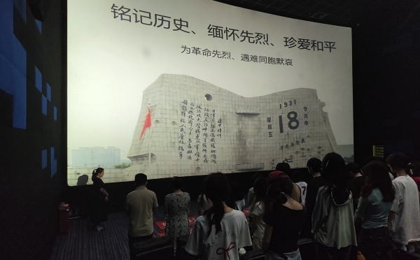 活动伊始,学院团委书记梁冰结合九一八事变的历史背景与时代意义,深刻阐释了“铭记历史”的现实价值。影片放映前,全体人员肃立,为在“九一八”事变及抗日战争中英勇牺牲的英烈和不幸遇难的同胞默哀。“那一刻,我感受到沉甸甸的责任。”2024级视觉与传达设计专业廖海琪说,“我们长在红旗下,享受着现在的国泰民安,更应该清楚,今天的幸福生活来得有多不容易,那是无数先辈用生命换来的!”
