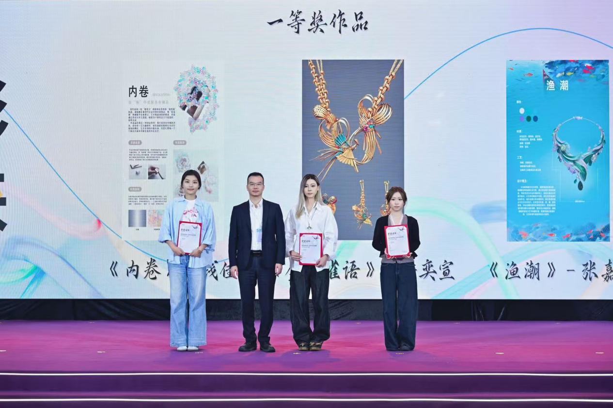 据悉,此次大赛是2025中国·汕尾彩色宝石产业发展大会暨首届汕尾国际珠宝展的系列活动之一,大赛主题中的“善美”呼应汕尾别称,“溢彩”涵盖珠宝、金银首饰和服装三大产业,“链动未来”寓意创新链与产业链联动、科技赋能产业发展。大赛此前共征集有效作品449件,涵盖镶嵌类263件、非遗类134件、串编类37件,参赛院校覆盖广东工业大学、广州美术学院、深圳职业技术大学、广东轻工职业技术大学等多所省内高校。