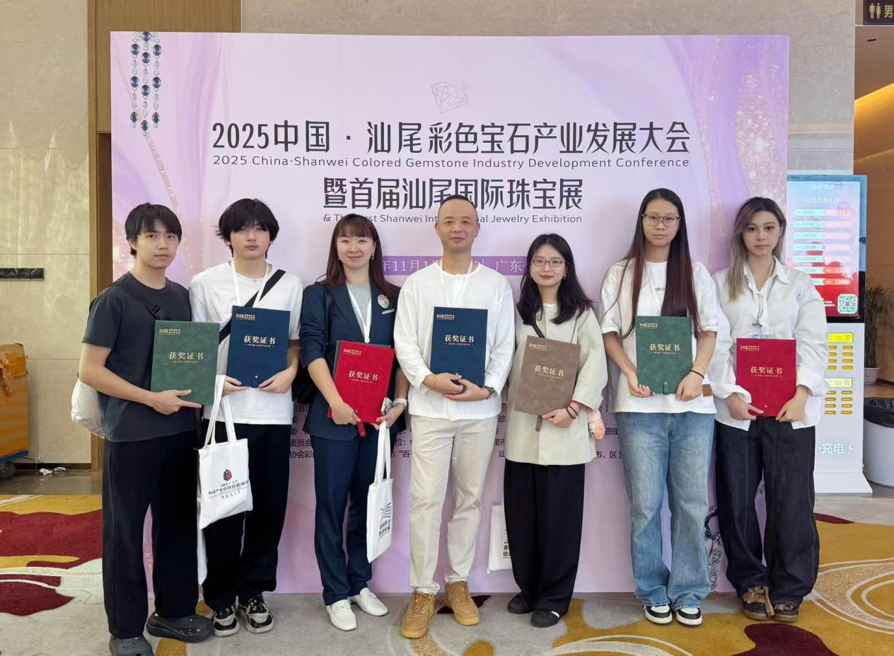 本网讯(记者 魏艺)11月2日,由汕尾市人民政府主办的彩宝设计大赛 “善美溢彩・链动未来” 颁奖典礼在汕尾市海丰县举行。公司师生斩获一等奖1项、二等奖1项、三等奖3项、最佳创意奖1项、优秀辅导教师奖1项,同时公司荣获最佳组织单位奖。伟德betvlctor1949源于英国首饰设计教研室副主任文海,专业教师肖婷婷、魏艺,带领获奖员工受邀参加本次颁奖典礼。