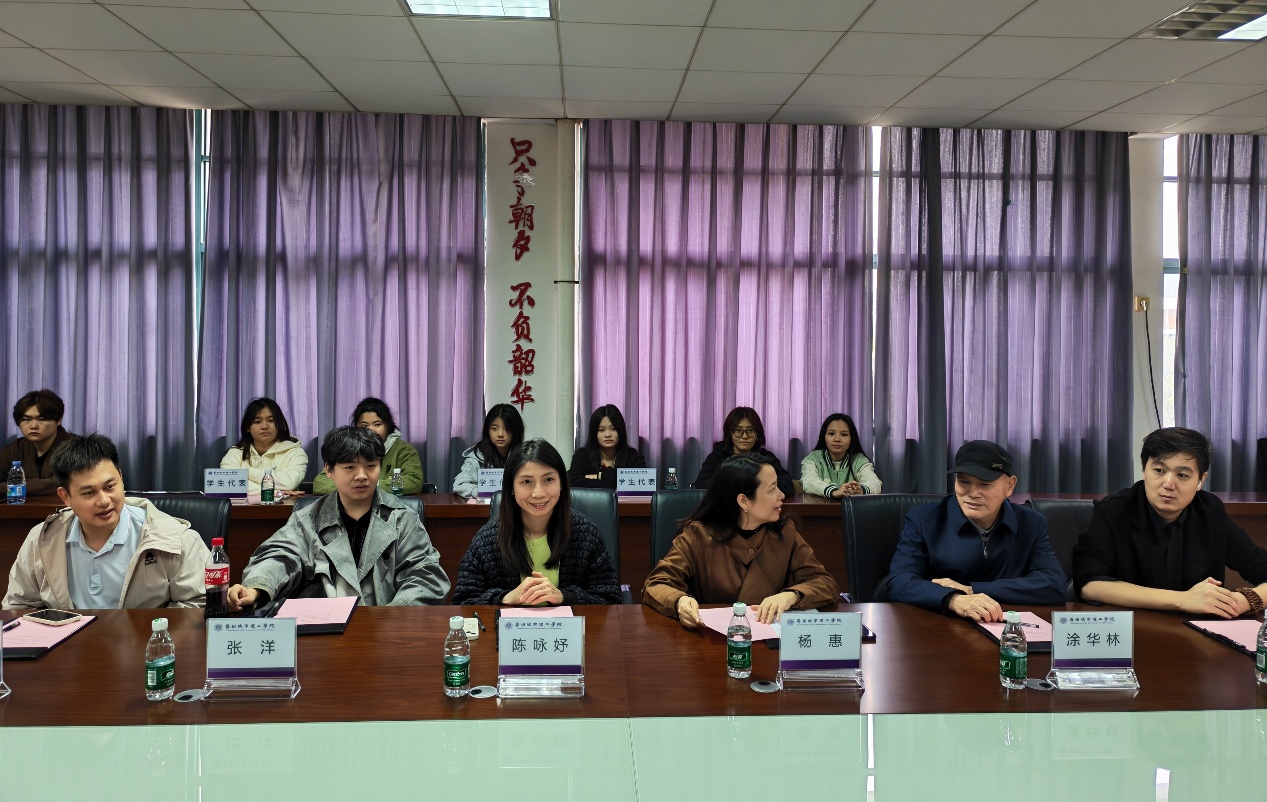在交流环节,双方视觉传达设计和产品设计专业老师围绕艺术类课程的团队结构、教学能力提升以及专业实践平台的建设与资源共享进行了探讨;同时,还就新教师的培养、课堂管理、学风建设等方面展开了全面交流,分享了各自的经验与做法。