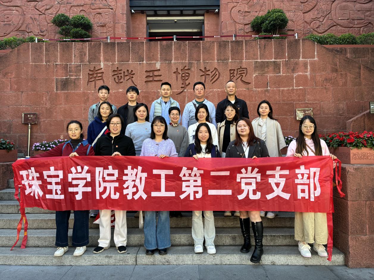 学习会后,支部党员集体前往南越王博物院。南越王博物院是国家一级博物馆,是广州市党员教育基地和广州市爱国主义教育基地。作为岭南地区重要的历史文化遗址,南越王墓以其出土的玉器、金银器等文物闻名于世,尤其以丝缕玉衣、组玉佩等瑰宝展现了古代工匠的高超技艺与审美境界。在博物馆专业讲解员的引导下,教师们依次参观了墓室原址陈列厅、玉器专题展厅及金银器展厅,深入了解了南越国时期玉器的材质选择、工艺技法及文化象征意义。
